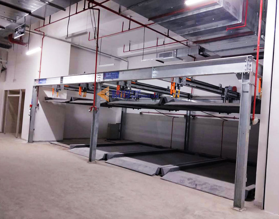 二、地下室復式車庫:針對停車場層高、地形的因素,分別采用了二層升降橫移類、簡易升降類、地坑式升降橫移類三種形式機械設(shè)備,共提供機械車位891個,在降低土建成本的同時提供了更多的車位數(shù)。