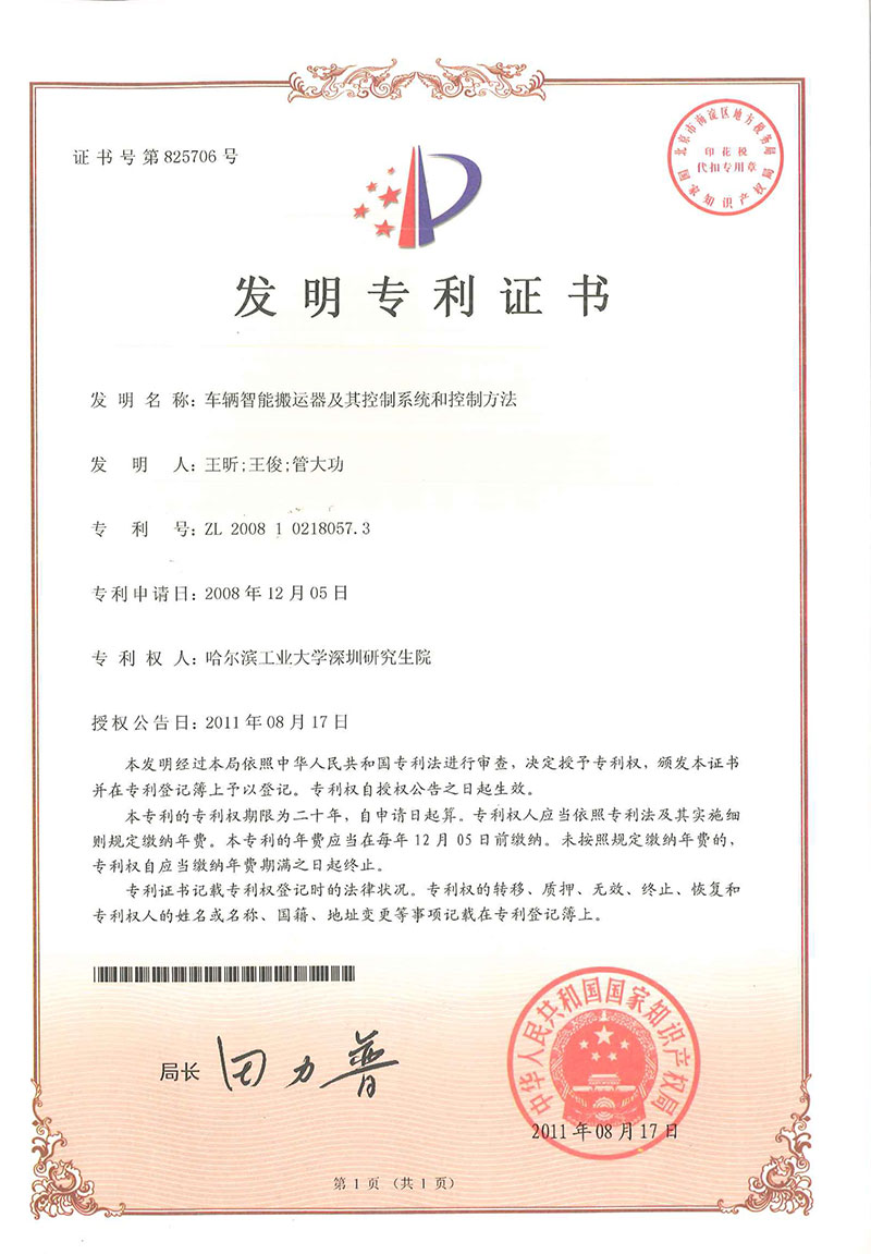 • 車輛智能搬運(yùn)器-發(fā)明證書(shū)