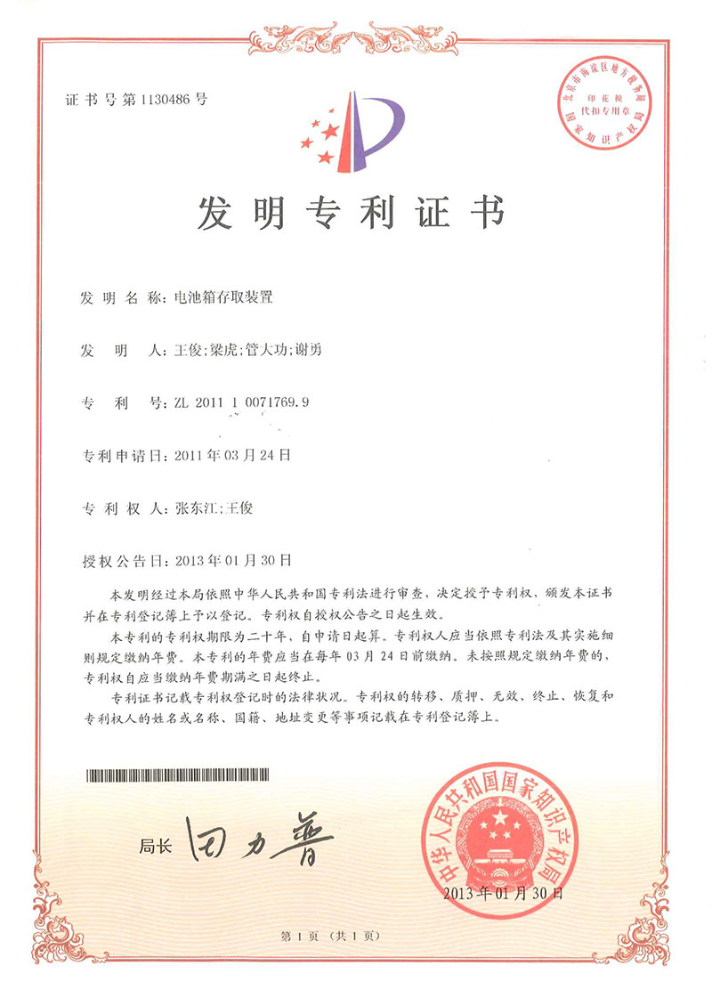 • 電池箱存取-發(fā)明證書(shū)